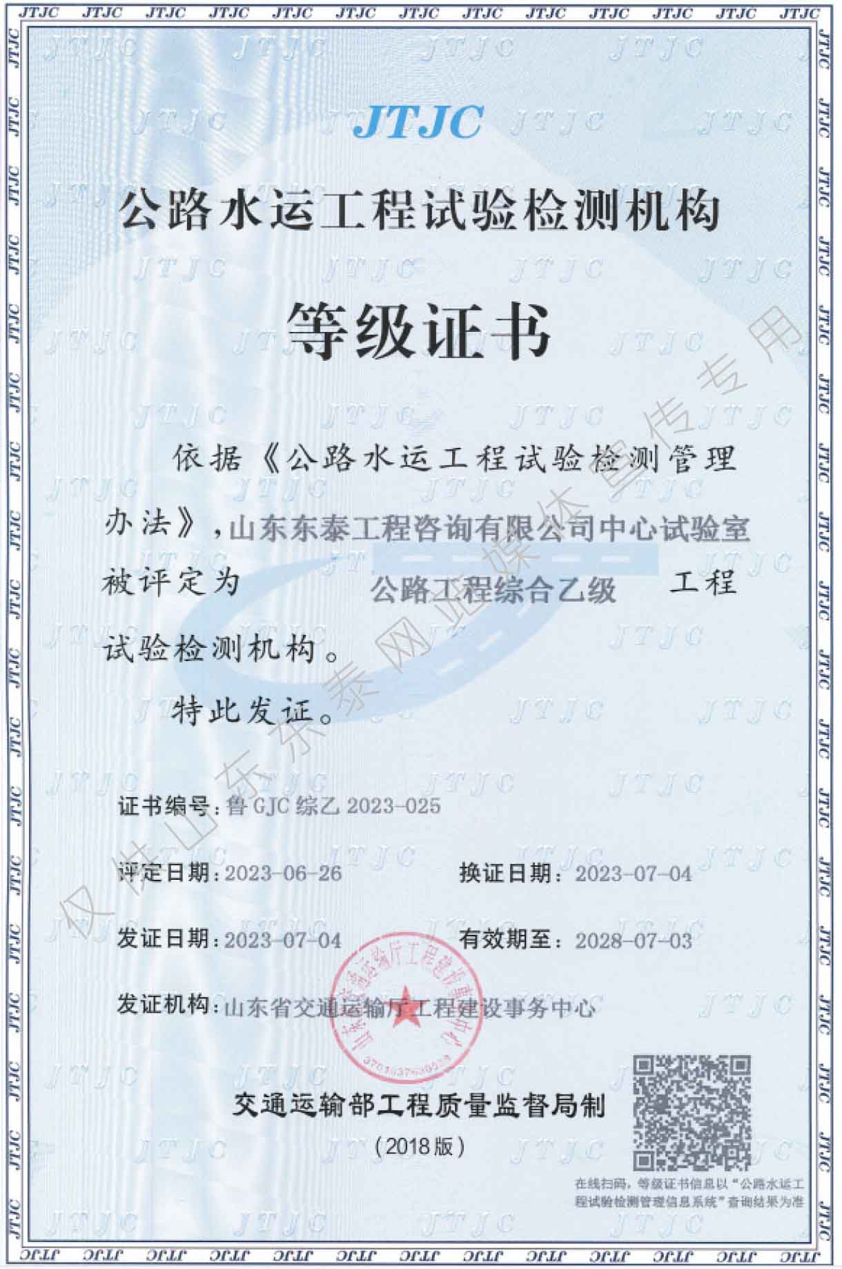 省交通运输厅试验检测综合乙级